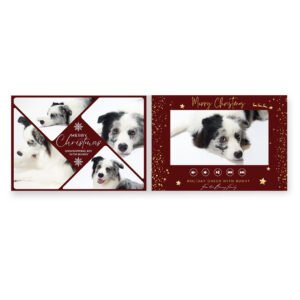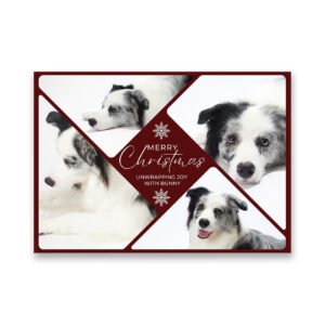 Imagine the joy on their face as they unwrap a gift that celebrates the furry friend who makes their life complete. The classic Christmas design provides a warm, nostalgic backdrop for their happiest memories. As they open it, they’re greeted by a collage of moments that define their special bond.
